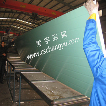 廣泛用于公共建筑、工業(yè)廠房的屋面、墻面和電子、醫(yī)藥、生物化工、食品等行業(yè)以及辦公室的裝飾圍護、吊頂、門;簡易活動房的圍護、組合冷庫、樓頂加層、崗亭等。